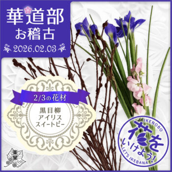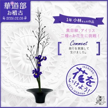 これは引退した三年生が文化祭で挑戦した生け方ですが、二年生にとっては2回目、一年生にとっては初挑戦となります。
