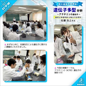 科学部 高大連携実験講座!『遺伝子多型分析(アクチニン3遺伝子)』講師:東邦大学理学部生物分子科学科 佐藤浩之先生