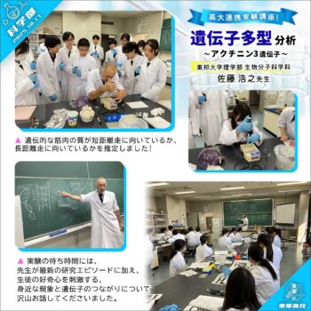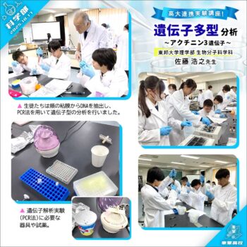 3. 科学部 高大連携実験講座!『遺伝子多型分析(アクチニン3遺伝子)』講師:東邦大学理学部生物分子科学科 佐藤浩之先生
