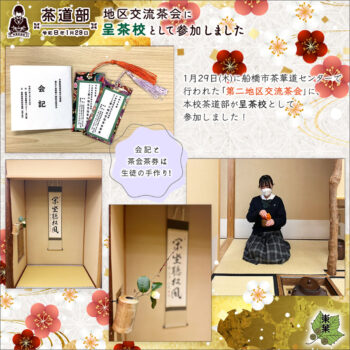 1月29日に船橋市茶華道センターで行われた「第二地区交流茶会」に、本校茶道部が呈茶校として参加しました!