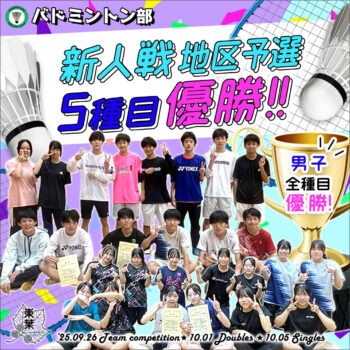 3. バドミントン部 新人戦地区予選 5種目優勝!!