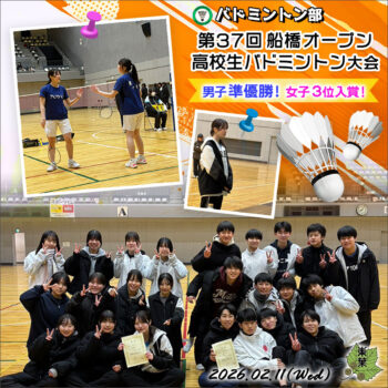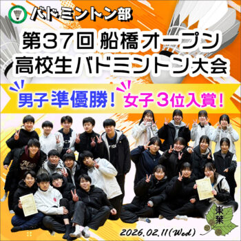 バドミントン部 第37回船橋オープン高校生バドミントン大会 男子準優勝 女子3位入賞!