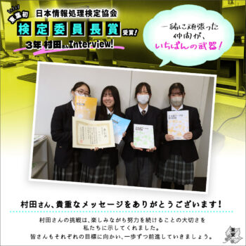 検定委員長賞を受賞!3年 村田さんにインタビュー