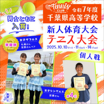【令和6年度千葉県総合体育大会テニス大会】 団体:優勝(インターハイ出場)、個人戦:シングルス…優勝・準優勝・第3位・第4位(インターハイ出場)ダブルス…優勝・準優勝(インターハイ出場)
