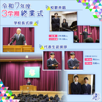3学期終業式にあたり、この一年間の学校生活を振り返りながら、生徒一人ひとりの成長を称えるお話がありました。